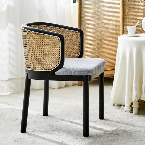 3. Rattan woven solid wood curved backrest